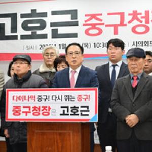 국민의힘 고호근 전 시의원이 15일 시의회 프레스센터에서 기자회견을 열고 올해 지방선거에서 중구청장에 출마하겠다고 공식 선언했다. 고호근 전 의원은 지난 2022년 지방선거에서…