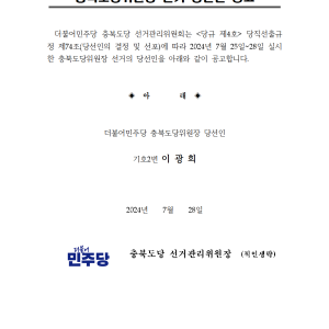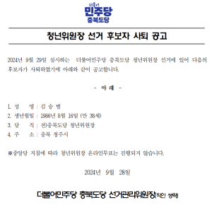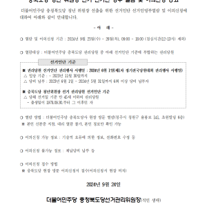 민주당 충북도당 - 2024년 3분기 수입지출열람공고