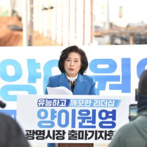 지방선거가 5개월여 앞으로 다가오며 광명시장 선거 구도가 본격화되는 가운데 양이원영 전 국회의원이 광명시장 출마를 공식 선언했다. 양이 전 의원은 20일 오전 광명 11·12구역…