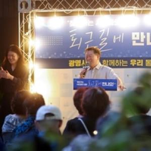 박승원 광명시장이 퇴근길 시민을 찾아 나서 즉석으로 소통하고 민원 해결사 역할을 하여 눈길.박 시장은 지난 15일 오후 6시 30분 지하철7호선 광명사거리역 쉼터에서 열린 ‘…