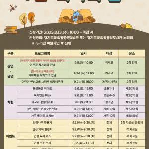 경기도교육청평생학습관(관장 류영신)이 ‘책으로 펼치는 인성 키움 마음 성장’을 주제로 ‘9월 독서의 달’ 행사를 운영한다.9월 2일부터 30일까지 운영되는 이번 프로그램은…