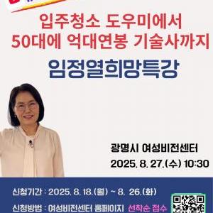 광명시 여성비전센터(시장 박승원)는 오는 27일 ‘2025년 하반기 정규교육 제54기’ 개강식과 아카데미 특강을 개최한다.이번 행사는 120여 명의 수강생과 시민이 참여하는…