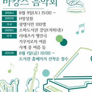 광명시(시장 박승원) 소하도서관은 오는 8월 9일 오후 3시 소하도서관 강당에서 무더운 여름에 시민이 즐길 수 있는 ‘여름볕 바캉스 음악회’를 개최한다.이번 음악회는 더위에 지친…