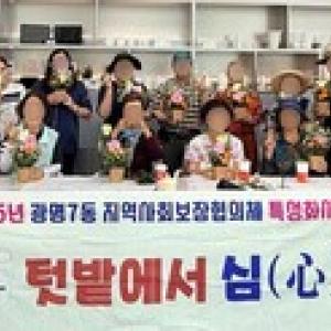 광명7동 지역사회보장협의체(위원장 유상기)는 지난 24일 중장년과 어르신 12명을 대상으로 관내 주말농장에서 진행한 특성화 사업 ‘우리동네 농업학교: 텃밭에서 심(心) 쿵!’을…