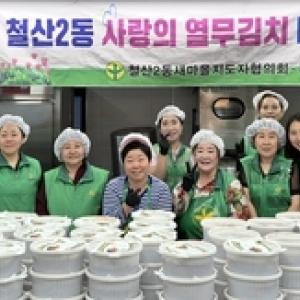 철산2동 새마을지도자협의회(회장 김현규)와 부녀회(회장 황숙자)는 지난 5일 관내 저소득층 이웃을 위해 직접 담근 열무물김치를 전달하는 나눔 행사를 진행했다고 밝혔다.이번…