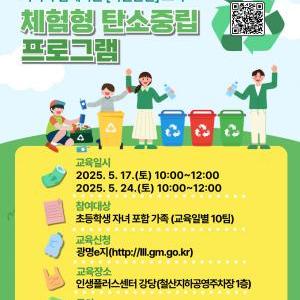 광명시(시장 박승원) 탄소중립센터는 오는 17일과 24일 인생플러스센터 강당에서 열리는 ‘자원순환’을 주제로 한 탄소중립 체험 프로그램 참여 가족을 모집한다.이번 프로그램은…