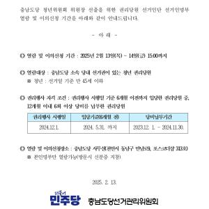 민주당 충남도당 - 더불어민주당 충남도당 청년위원장 당선자 공고