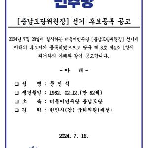 - 15일 16:30 문진석 도당위원장 시작으로…