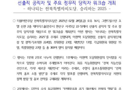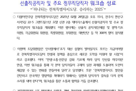 전자점자 내려받기 점자뷰어 보기250226_[보도자료] 전북특별자치도당_워크숍_개최.hwp