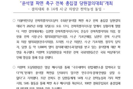 전자점자 내려받기 점자뷰어 보기250311_(사전보도자료)윤석열_파면_촉구_전북_총집결_당원결의대회 _v2.0.hwp