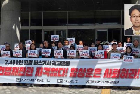 2,400원을 횡령한 버스 기사의 해고가 정당하다는 판결을 내렸던 함상훈 헌법재판관 후보자 지명을 철회할 것을 시민사회단체와 노동계가 강력히 촉구했습니다.