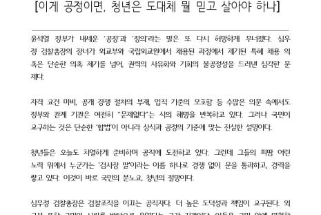 25.03.27_성명서_ 심우정_검찰총장_자녀_특혜_채용_의혹_관련_청년_대학생 위원회_.hwp