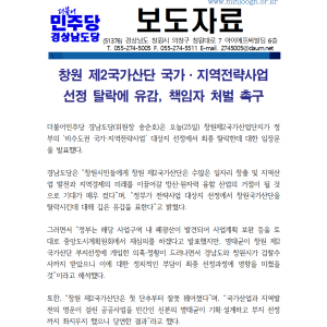 민주당 경남도당 - 창원 제2국가산단 탈락 책임자 처벌 촉구