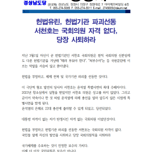 민주당 경남도당 - 성명서-헌법유린, 헙법기관 파괴선동 서천호는 사퇴하라!