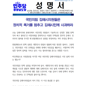 더민주 경남도당 - 성명서 - 국민의힘 김해시의원들은 김해시민께 사과하라!