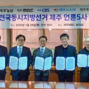 제주MBC와 제주일보, 제주CBS, 제주의소리, 제주투데이 등 도내 언론 5사는 제주MBC에서 6.3 지방선거 업무 협약을 체결하고 공정하고 깨...