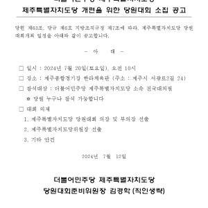 민주당 제주도당 더불어민주당 제주도당 여성.노인.청년위원장 선출을 위한 후보자 등록 공고