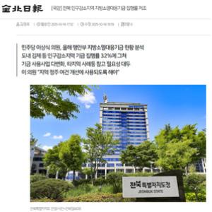 지방소멸대응기금이 제대로 활용되지 못하고 있다는 지적이 올해도 나왔습니다. 올해 6월 말 기준 전북지역 10개 시‧군의 지방소멸대응기금 집행률이 32%로 나타났는데요, 특히…