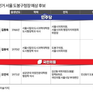 [서울=뉴스핌] 이경화 기자 = 6·3 지방선거를 앞두고 서울 도봉구청장 선거 출마 예정자들의 발걸음도 빨라질 전망이다. 도봉구는 이른바 '노도강'(노원·도봉·강북) 중에서도…