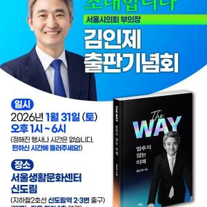 김인제 서울시의원(부의장, 더불어민주당, 구로2)이 이달 31일(토) 출판기념회를 연다. 지난 2022년에 지방선거에서 구청장 출마를 표방한 적...