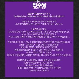 강남역 여성살해사건 9주기 여성폭력 없는 사회를 위한 우리의 약속을 다시금 다짐합니다 오늘은 우리 사회에 큰 충격과 아픔을 남긴 강남역 여성살해사건이 발생한 지 9주기가 되는…
