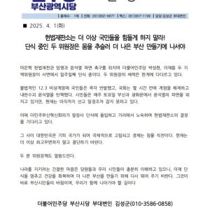 민주당 부산시당 - 헌법재판소는 더 이상 국민들을 힘들게 하지 말라! 단식 중인 두 위원장은 몸을 추슬러 더 나은 부산 만들기에 나서야