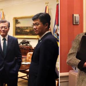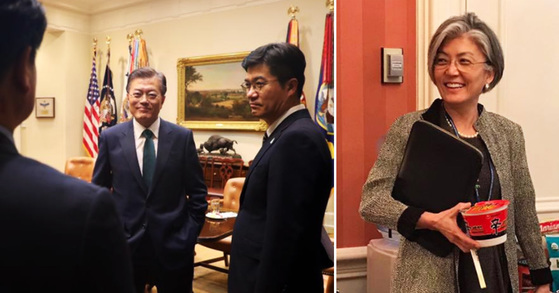 컵라면 득템한 강경화 외교부 장관 사진부터 틈틈이 문재인 정부의 방미 현장을 카메라에 담기 위해 열일한 윤영찬 청와대 국민소통수석의 직찍까지.