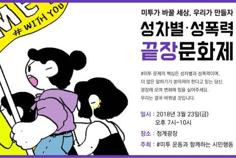 3월 23일(금) 오후7시, 청계광장에서 <성차별, 성폭력 끝장문화제>가 개최됩니다.