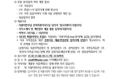 민주당 전북도당 - 더불어민주당 전북특별자치도당 사무직당직자 채용공고