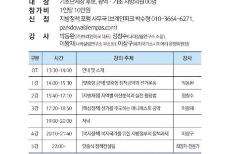 [2018 지방선거 제1회 지방정책 포럼] "정책으로 지역을 바꿀 머슴을 준비합니다!"