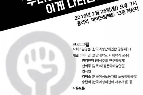 (공유) 2/26, [긴급 토론회] #MeToo 운동 '긴급' 토론회 "우리는 아직도 외친다. 이게 나라냐!"