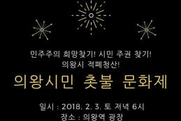 2월3일 토요일 저녁 6시~7시, 의왕역 광장에서 "민주주의 희망찾기, 시민주권찾기, 의왕시 적폐청산 의왕시민 촛불 문화제"가 열립니다.