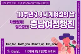 수, 2018/02/28- 19:29 에 익명 (미확인) 에 의해 제출됨 관련 개인/그룹 천안 NGO 센터 지역 천안시 충남여성행진은 3월 8일 오후3시 천안역에서 출발합니다. 14개의 단체와 시민들이 모여 성별임금격차 해소, 여성장애인지원법 제정, 낙태죄 폐지 등의 구호를 외칩니다. 함께하실 분은 전세계 반성폭력 미투운동에 함께하는 의미로 검은 상의를 입고 오시면 감사하겠습니다~^^ 링크 http://ngo-center.or.kr/gnuboard4/bbs/board.php?bo_table=com_data&wr_id=2885 Tags ngo소식 충남여성행진 여성의날 Like 0 Dislike 0 370 views 댓글 달기 이름 제목 Comment 저장 Preview Leave this field blank
