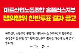 2019년 임금교섭 승리를 위한 쟁의행위 찬반투표가 찬성률 94.3%를 기록하며 압도적 찬성으로 가결되었습니다.