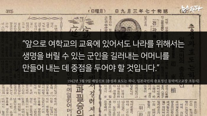 동덕여자대학교. 조동식(趙東植)이 1950년에 설립했다. 2009년 대통령 소속 친일반민족행위 진상규명위원회는 그를 친일반민족행위자로 지정했다. 조동식의 친일행적은 화려하다. 그는 일제침략 전쟁을 찬양하고 징병을 적극 독려했으며, 내선일체와 황민화 운동도 주도했다. 동덕여자고등학교 교장이던 1942년 3월 9일과 5월 12일, 조동식이 <매일신보>에 기고한 글을 소개한다. 제목은 각각 <충성과 효도는 하나>, <군인의 안해(아내)를 육성할 여학교 교육의 새정신>으로 징병을 적극 독려하는 내용이다.