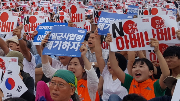 또한 공동대표단은 "박근혜 정권이 국민의 동의 없이 추진한 일본과의 군사협정을 파기하기 위한 청와대 청원 운동에 함께 해달라"며 "지소미아 연장시한 종료일인 8월 24일 저녁 7시 일본대사관 앞에서 열릴 제6차 아베규탄 촛불집회에도 많이 참여해달라"고 호소했습니다.