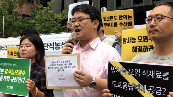 환경운동연합 등 전국 30여개의 단체로 구성된 탈핵시민행동은 후쿠시마산 식재료를 선수촌에 공급하고, 후쿠시마에서 야구경기를 개최하겠다고 밝히며 무리하게 올림픽을 추진하고 있는 일본 정부를 규탄했습니다.