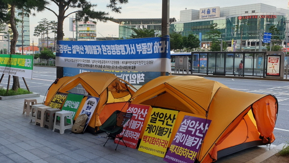 정부는 8월중 설악산 오색케이블카 추진여부를 최종 결정할 예정입니다. 시민사회는 환경영향평가 부동의를 촉구하기 위해 서울스퀘어 앞에 농성장을 꾸렸습니다. 설악산을 지키기 위한 우리의 마지막 행동에 함께 해주세요.