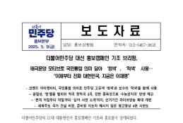 금, 2025/05/09- 00:00 에 admin 에 의해 제출됨 [0] 관련 개인/그룹 민주당 중앙당 정당 더불어민주당 지역 미특정 카테고리 보도자료 홍보본부홍보캠페인_기조_브리핑_미디어데이_보도자료최종.pdf공유 공유하기 닫기페이스북트위터카카오톡URL 복사 링크 https://theminjoo.kr/main/sub/news/view.php?sno=0&brd=188&post=1211154&search= Like 0 Dislike 0 12 views 댓글 달기 이름 제목 Comment CAPTCHA 스펨 사용자 차단 질문 저장 Preview