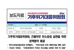 수, 2025/05/07- 00:00 에 admin 에 의해 제출됨 [0] 관련 개인/그룹 민주당 중앙당 정당 더불어민주당 지역 미특정 카테고리 보도자료 250507_보도자료_기후위기대응위원회_건물부분_탄소중립_실현을_위한_정책협약_체결.pdf공유 공유하기 닫기페이스북트위터카카오톡URL 복사 링크 https://theminjoo.kr/main/sub/news/view.php?sno=0&brd=188&post=1211112&search= Like 0 Dislike 0 댓글 달기 이름 제목 Comment CAPTCHA 스펨 사용자 차단 질문 저장 Preview