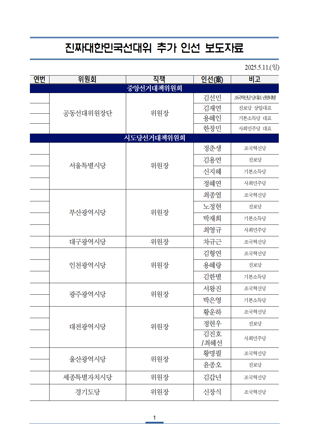 일, 2025/05/11- 00:00 에 admin 에 의해 제출됨 [0] 관련 개인/그룹 민주당 중앙당 정당 더불어민주당 지역 미특정 카테고리 보도자료 250511_진짜대한민국선대위_추가_인선_보도자료_야4당_등.pdf공유 공유하기 닫기페이스북트위터카카오톡URL 복사 링크 https://theminjoo.kr/main/sub/news/view.php?sno=0&brd=188&post=1211225&search= Like 0 Dislike 0 1 view 댓글 달기 이름 제목 Comment 저장 Preview