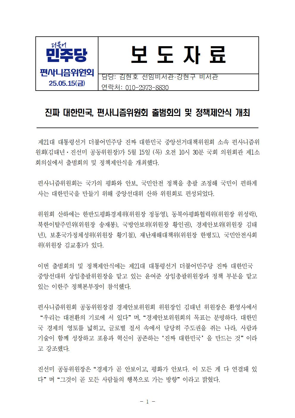 목, 2025/05/15- 00:00 에 admin 에 의해 제출됨 [0] 관련 개인/그룹 민주당 중앙당 정당 더불어민주당 지역 미특정 카테고리 보도자료 250515_편사니즘위_보도자료_출범식_및_정책제안.pdf공유 공유하기 닫기페이스북트위터카카오톡URL 복사 링크 https://theminjoo.kr/main/sub/news/view.php?sno=0&brd=188&post=1211383&search= Like 0 Dislike 0 2 views 댓글 달기 이름 제목 Comment 저장 Preview