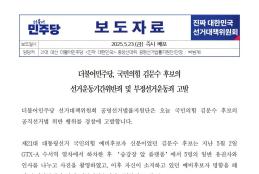금, 2025/05/23- 00:00 에 admin 에 의해 제출됨 [0] 관련 개인/그룹 민주당 중앙당 정당 더불어민주당 지역 미특정 카테고리 보도자료 250523_보도자료_김문수_후보_부정선거운동개찰구_명함배부_고발.pdf공유 공유하기 닫기페이스북트위터카카오톡URL 복사 링크 https://theminjoo.kr/main/sub/news/view.php?sno=0&brd=188&post=1211740&search= Like 0 Dislike 0 1 view 댓글 달기 이름 제목 Comment CAPTCHA 스펨 사용자 차단 질문 저장 Preview