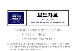 금, 2025/05/23- 00:00 에 admin 에 의해 제출됨 [0] 관련 개인/그룹 민주당 중앙당 정당 더불어민주당 지역 미특정 카테고리 보도자료 250523_빛의혁명시민본부_보도자료_민주시민단체_7개_단체가_지지_선언.pdf공유 공유하기 닫기페이스북트위터카카오톡URL 복사 링크 https://theminjoo.kr/main/sub/news/view.php?sno=0&brd=188&post=1211754&search= Like 0 Dislike 0 댓글 달기 이름 제목 Comment CAPTCHA 스펨 사용자 차단 질문 저장 Preview