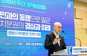 광명시가 7년간 시민과 함께 쌓아온 자치분권 기반을 발판으로 자치분권 일상화를 향한 도약을 시작한다.시는 27일 오후 시청 중회의실에서 를 주제로 정책브리핑을 열었다.이날 하태화 자치행정국장은 조직 정비, 시민 참여 플랫폼 확대 등 실질적 시민 참여 기반 구축 성과를 설명하며, 을 비전으로 2027년까지 자치분권의 일상화를 목표로 정책을 추진해 나갈 계획이라고 밝혔다.하 국장은 “시민은 단순한 수혜자가 아니라 정책의 주체”라며 “그간 쌓아온 기반과 역량을
