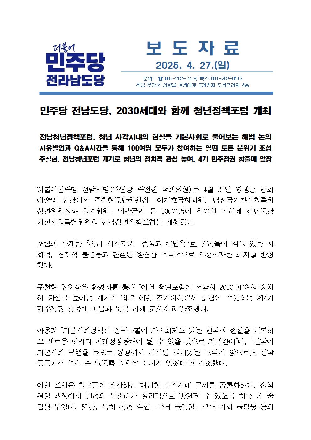일, 2025/04/27- 00:00 에 admin 에 의해 제출됨 관련 개인/그룹 민주당 전남도당 정당 더불어민주당 지역 전남 카테고리 보도자료 링크 https://jnminjoo.kr/bbs/?b_id=news_report&site=basic&mn=1018&type=view&bs_idx=546 Like 0 Dislike 0 댓글 달기 이름 제목 Comment 저장 Preview Leave this field blank