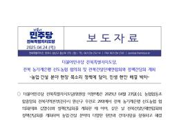금, 2025/04/25- 00:00 에 admin 에 의해 제출됨 관련 개인/그룹 민주당 전북도당 정당 더불어민주당 지역 전북 카테고리 보도자료 250424_보도자료_전북농기계은행선도농협협의회_및_전북건설단체연합회_간담회_v1.0.hwp전북 농기계은행 선도농협 협의회1.jpg전북건설단체연합회 간담회1.jpg 링크 https://jeonbuk.theminjoo.kr/party/sub/news/view.php?brd=249&post=1675&board_id=press Like 0 Dislike 0 댓글 달기 이름 제목 Comment 저장 Preview Leave this field blank