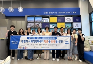 광명시는 지난 20일 양주시 공무원과 사회적경제지원센터 관계자들이 광명시의 사회적경제 정책 우수사례를 벤치마킹하기 위해 광명시를 방문했다고 22일 밝혔다.양주시 방문단은 광명시 사회적경제 홍보전시관 ‘더가치홀’을 찾아 ▲지역공동체 자산화 사업 ▲공정무역도시 조성 사례 ▲지속가능관광 연계 프로그램 등 광명시의 특화 정책을 살펴보고, 사회적경제센터의 주요 사업 현황을 공유받았다.양주시 관계자는 “광명시의 체계적이고 실천 중심적인 사회적경제 운영 방식이 매우 인상 깊었다”며 “우리 지역에서도 안정적인 사회적경제 기반을 만들 수 있도록 참