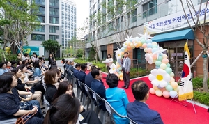 호반써밋그랜드에비뉴 아파트에 이 새로 문을 열었다.시는 지난 26일 호반써밋그랜드에비뉴 2단지 내 개원식을 개최했다.은 지난해 10월 시가 광명제10R구역 주택재개발정비사업조합과 어린이집 설치·운영을 위한 무상임대 협약을 체결하고, 위탁운영자를 선정한 후 리모델링을 거쳐 278.92㎡ 규모로 조성됐다. 지난 3월 4일부터 운영을 시작해 현재 0~3세 영유아 53명을 보육하고 있다. 박승원 광명시장은 축사를 통해 “아이 키우기 좋은 도시를 들기 위해 공보육 확충에 최선