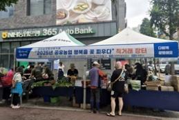 는 지난 28일 농협중앙회 광명시지부 앞에서 공유농업 활성화를 위한 ‘공유농업 행복을 꽃피우다’의 첫 번째 프로그램으로 ‘직거래장터’를 운영했다고 밝혔다.이번 장터에서는 제철 채소를 활용한 요리법 안내와 시식, 허브 음료 만들기 등 다양한 체험 프로그램도 함께 진행해 시민들의 호응을 얻었다.행사에 참여한 한 시민은 “싱싱한 제철 채소를 현장에서 저렴하게 구입하고,색다른 요리법도 배울 수 있어 매우 유익했다”고 말했다.김재흥 광명텃밭보급소 대표는 “이번 직거래장터가 지역의 우수한 농산물을 합리적인 가격에 만날 수 있는